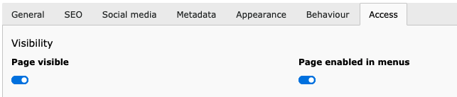 If you do not want the page to be part of your menu structure, head to the Access tab and deactivate the field Page enabled in menus.